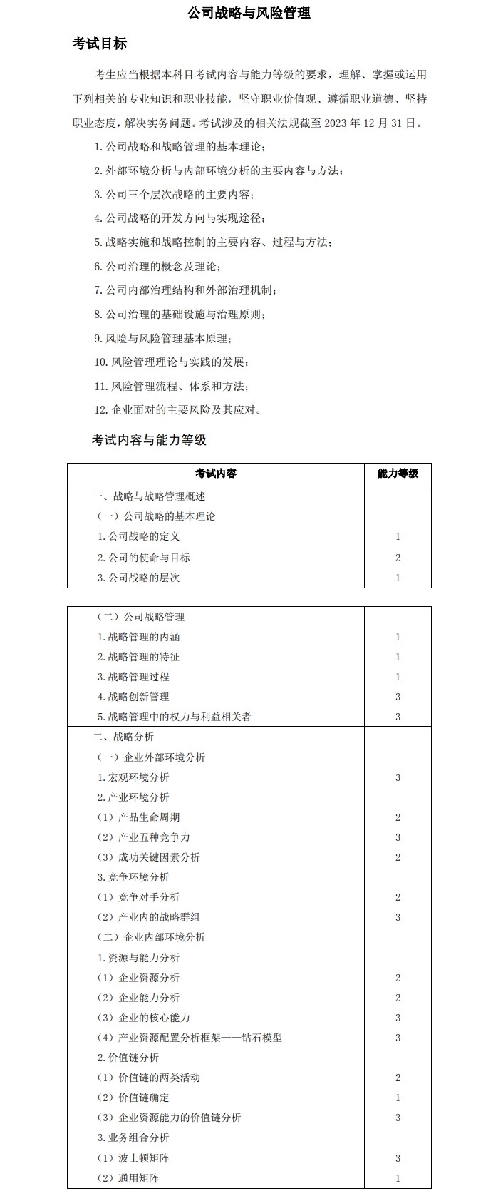 注意!2024注册会计师《战略》考试大纲公布啦!注册会计师考试大纲不仅规定考试的范围,也清楚明了的为考生展示了各章节需要掌握的知识重点,利用好注册会计师考试大纲同学们备考一定能事半功倍!接下来就来看看2024年注册会计师专业阶段考试大纲吧~