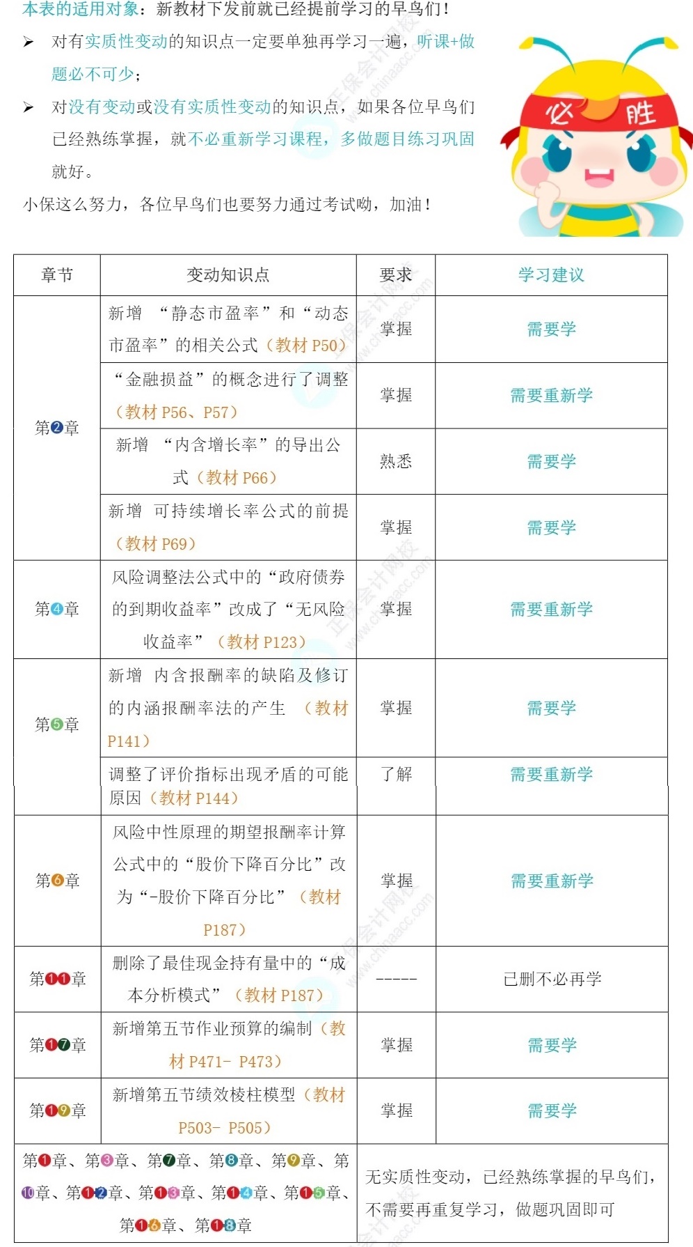 提前听课备考的早鸟们对于教材变动比较敏感,很多同学不知道自己要不要再学一遍?应该重点学习哪里?为此小保给各位“早鸟们”整理了2024年注会《财管》每章的变动知识点并配置了学习指导建议,一起看下吧!