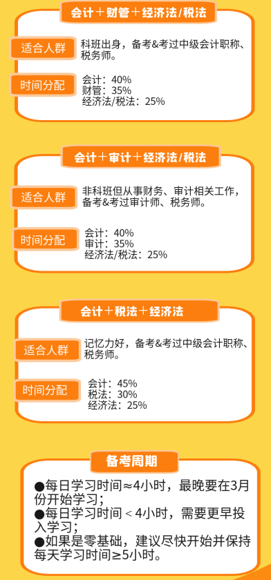 | 科目搭配策略 | 1年考2科 | 1年考3科 | 1年考4科 |