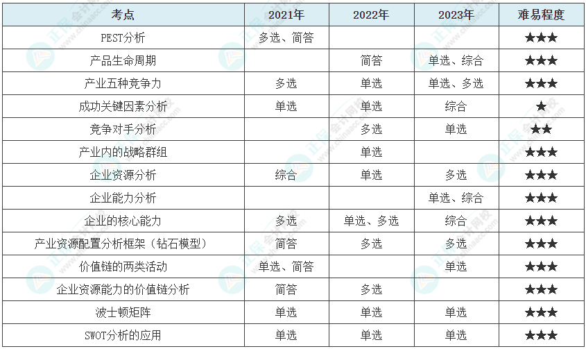 注会《战略》各章知识点历年常出题型整理汇总