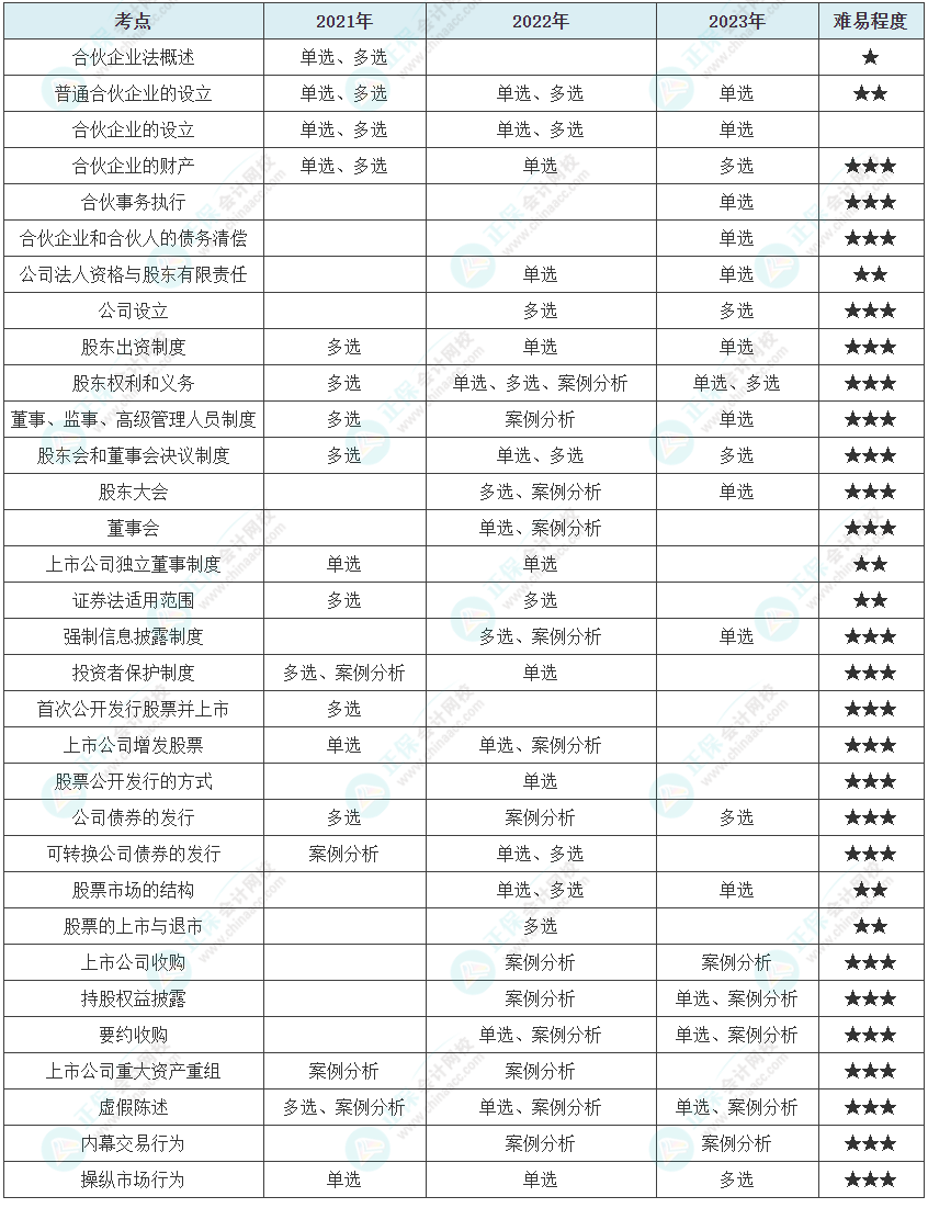 2024年注会考试报名4月8日开始(点此去报名>>)不同题型,对知识点的掌握要求不同,你知道历年注会《经济法》考试各章知识点常考的题型有哪些吗?难易程度又是如何?网校整理了注会经济法各章知识点历年常出题型,希望对同学们的备考有所帮助!
