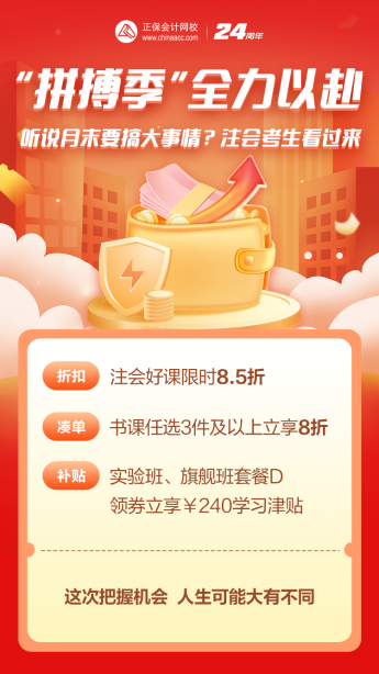 2024年注会备考进行中,网校助大家一臂之力!想要报课、买书的同学们注意啦,拼搏季活动惊喜来袭,限时折扣风暴席卷而来,手慢无,心动不如行动!