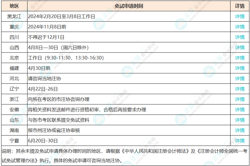 截止目前,多地注协已经公布了2024年CPA免试要求及申请时间,符合条件免试的同学一定不要错过哦。点击下图查看详情~