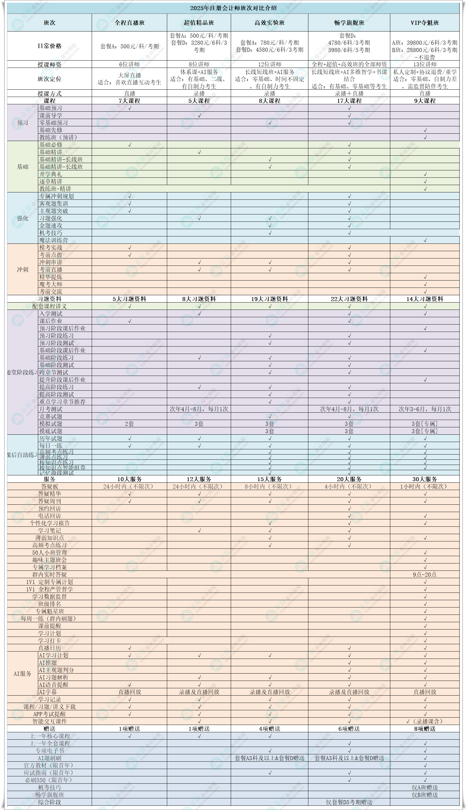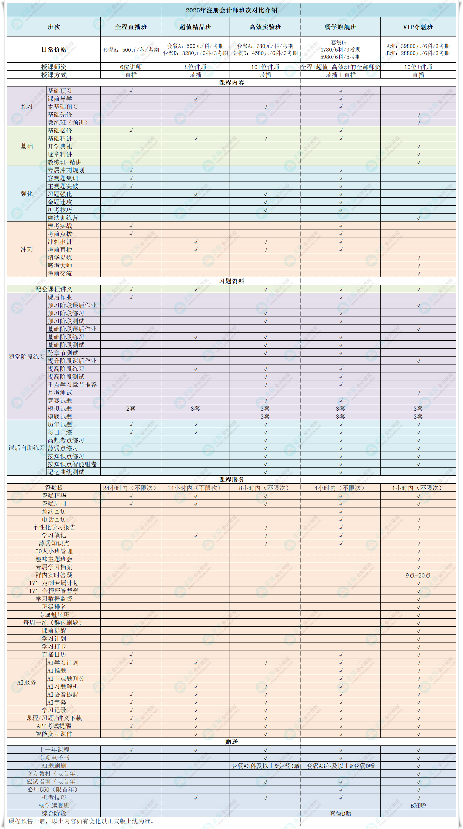 2025年注册会计师课程预售开启,全新升级!多个班次怎么选?每个班次都包含哪些内容及服务,下面正小保整理了2025年注册会计师各班次对比,内容&题库&服务&赠送一表了解!