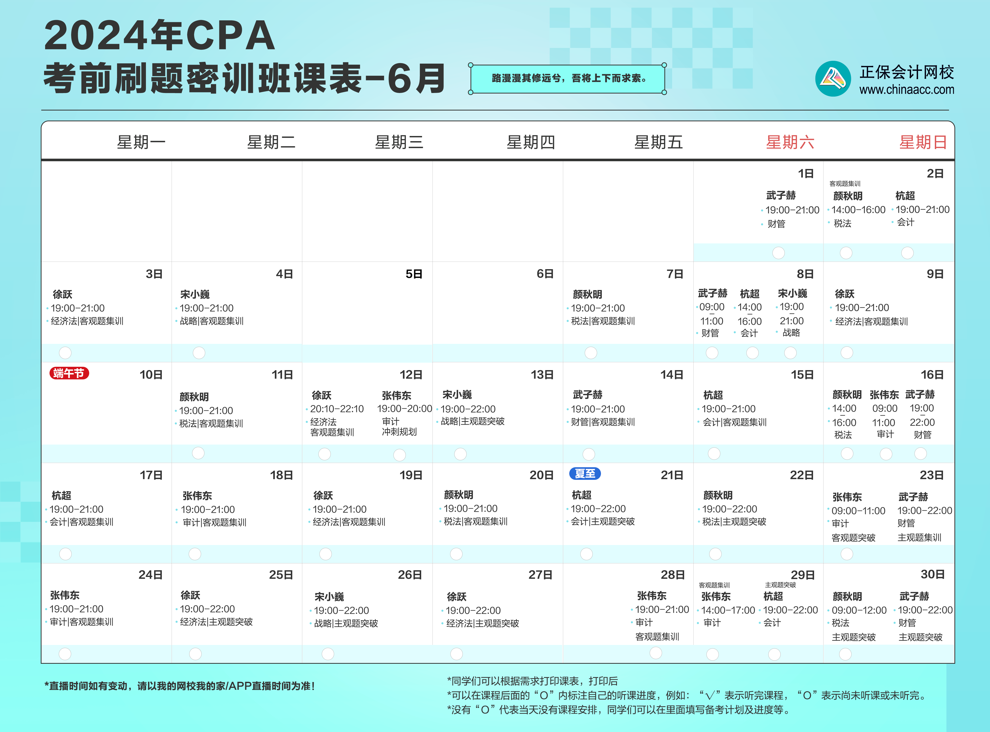 注:直播时间如有变动,请以“我的网校我的家”和班主任通知为准。