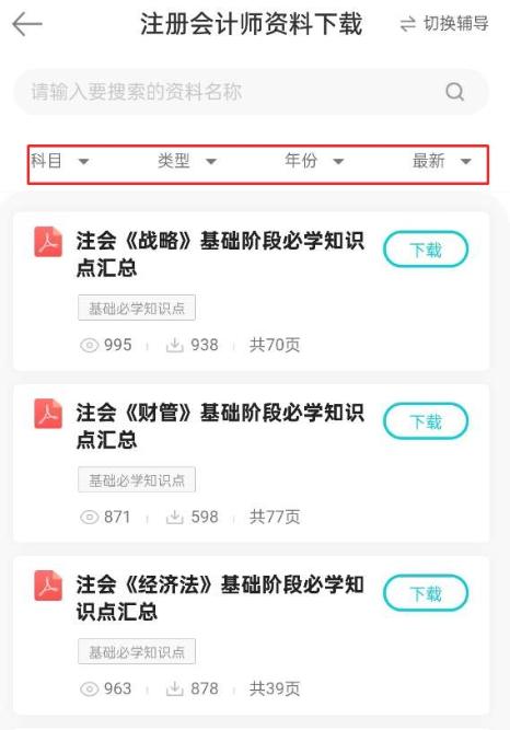 ●找资料效率大大提升,可按辅导、科目、类型、年份筛选。