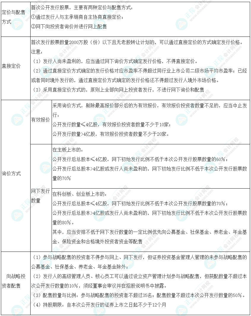知识点32:首次公开发行股票的定价与配售