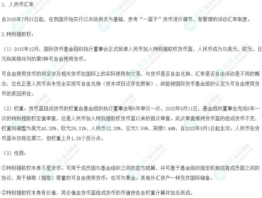 知识点49:人民币汇率制度与人民币加入特别提款权货币篮