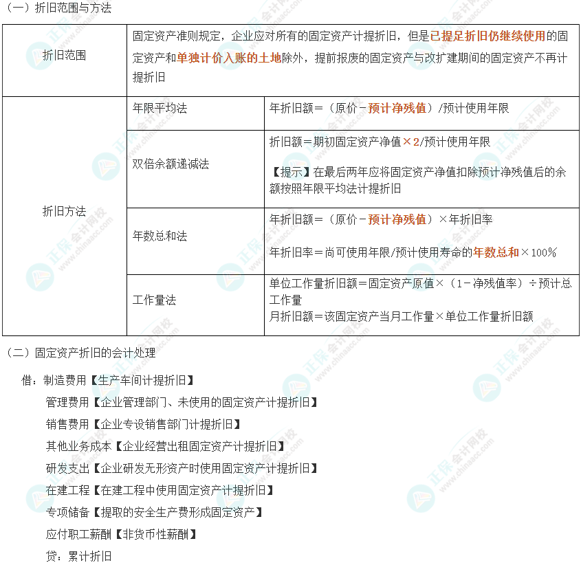 2024年注会《会计》第3章高频考点2:固定资产折旧