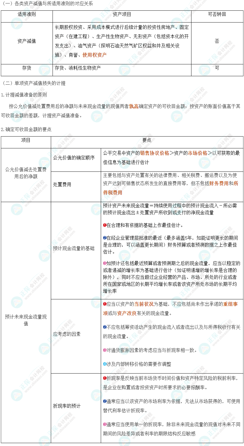 高频考点 | 单项资产减值损失的确认与计量;资产组及商誉减值的测试 |