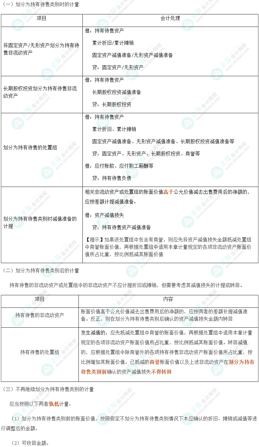 持有待售类别的分类、持有待售类别的账务处理、持有待售资产的列报、终止经营