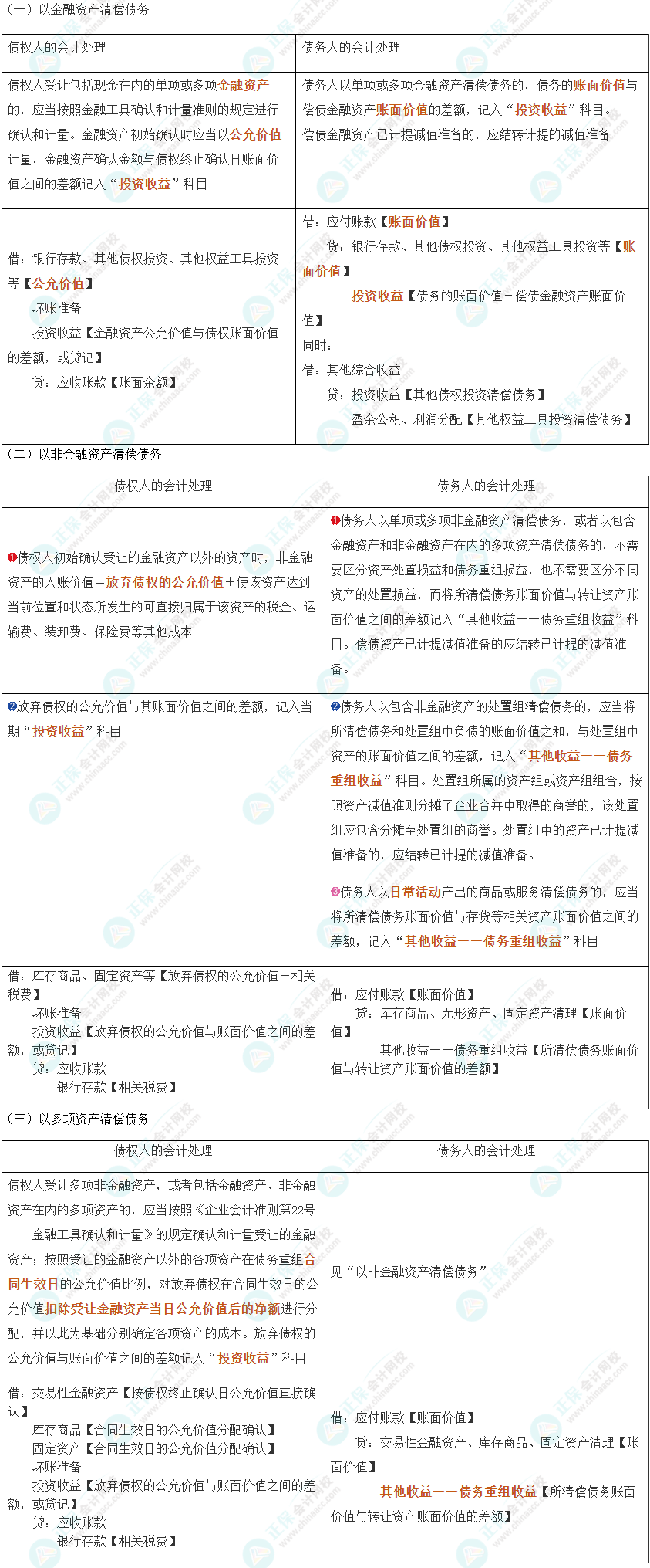 高频考点 | 以资产清偿债务、以组合方式进行债务重组 |