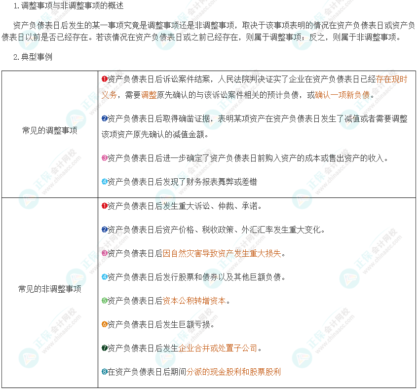 高频考点 | 日后事项的分类、调整事项的会计处理、非调整事项的会计处理 |