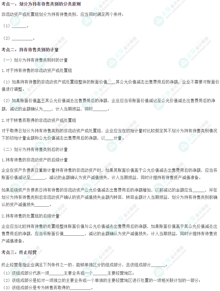 【注会会计默写本——第十五章 持有待售的非流动资产、处置组和终止经营】