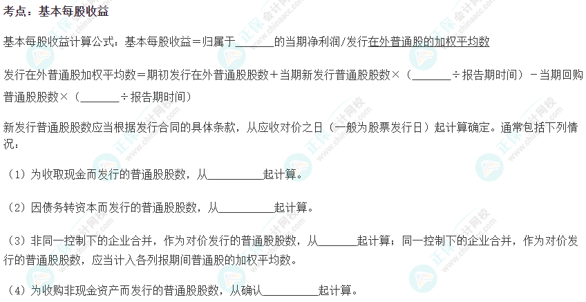 【注会会计默写本——第二十八章 每股收益】
