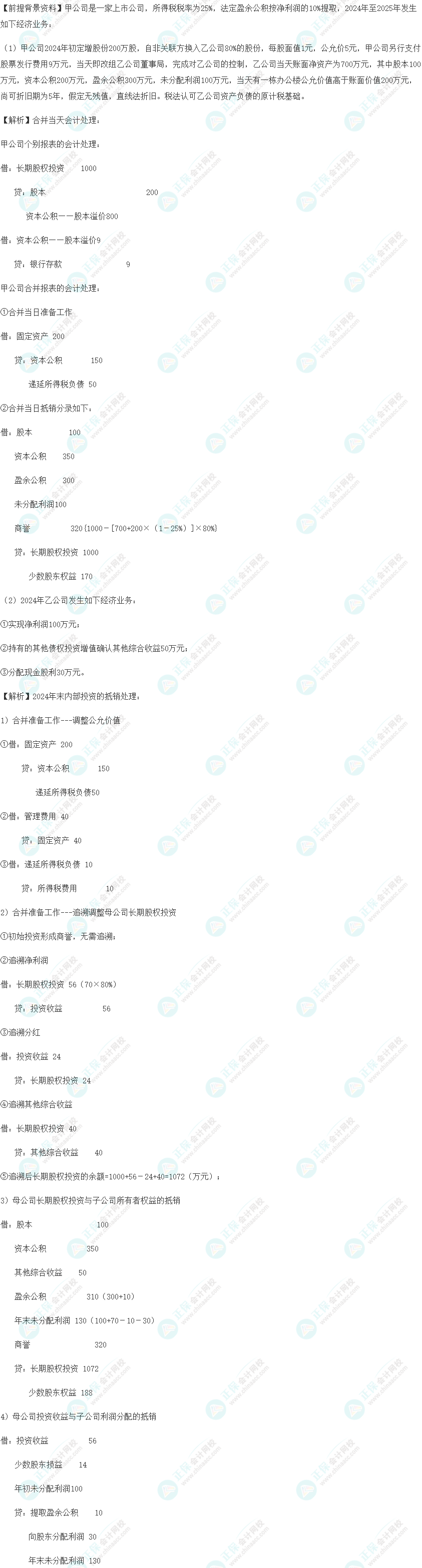 以下是高志谦老师:高志谦老师2024年注会母仪天下第六季之合并报表特殊事项(题目+答案)部分内容: