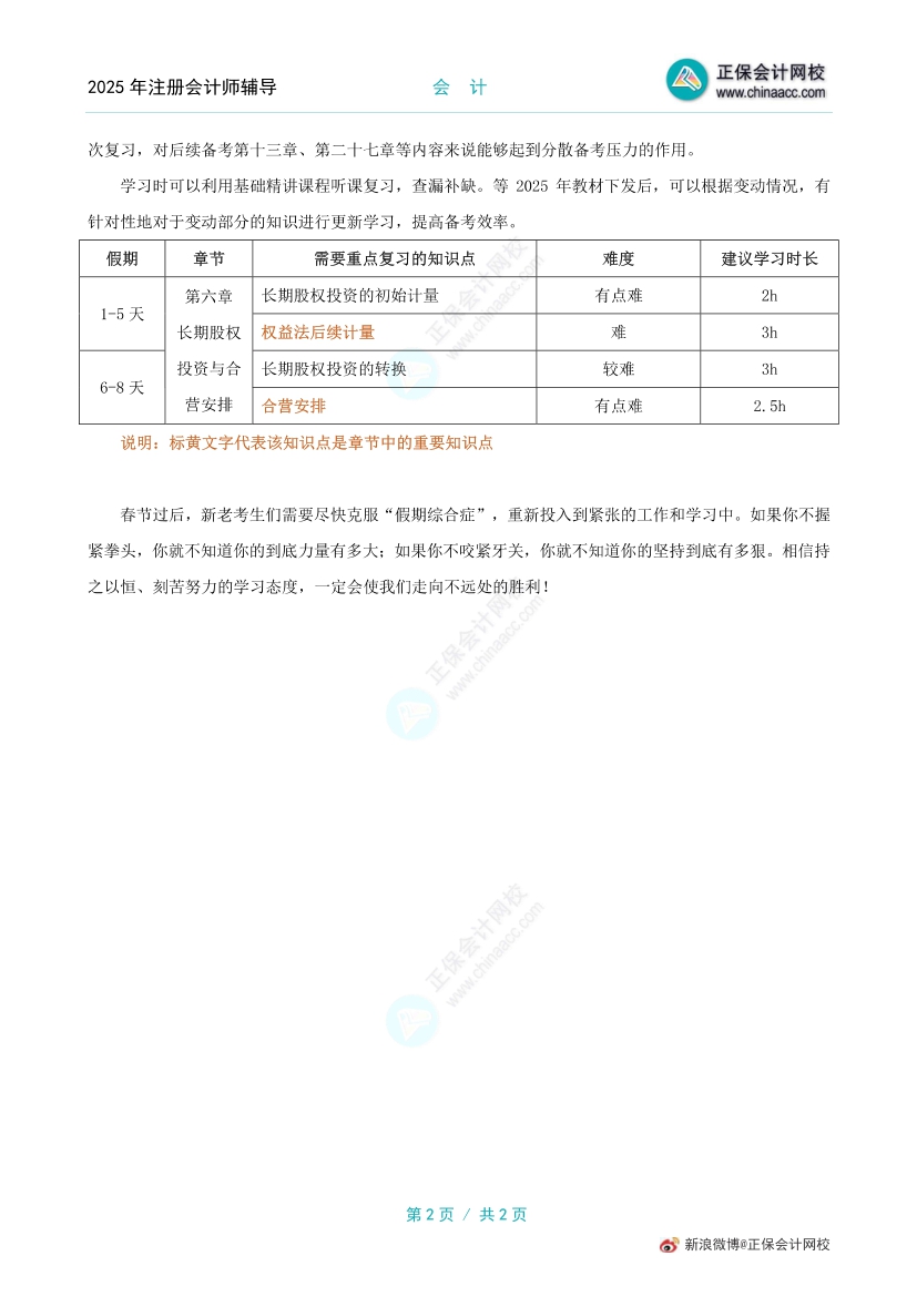 春节假期的脚步越来越近了,大家的学习进度到哪里了呢?紧张的备考节奏是不是已经开始松懈了?2025年注会考试时间公布,依旧是在8月底考试,留给我们备考的时间更紧张了,即便是春节假期,也希望各位学员不要放松,每天拿出一定的时间来进行学习~