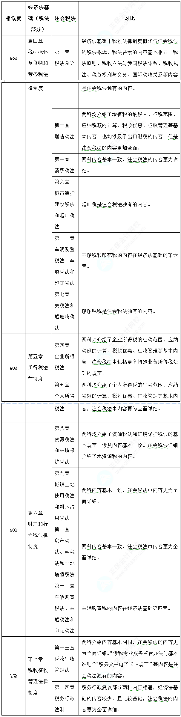 内容方面:经济法基础与注会经济法、税法的共同点较多,与经济法基础相比,注会经济法、税法的内容更详细,更全面,经济法基础的知识点基本涵盖其中,因此,基础性的内容就可以不用重复学习了。