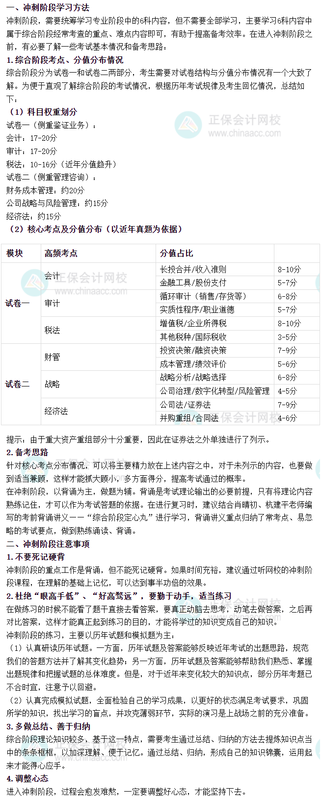 关关难过关关过,经过了综合阶段基础阶段、习题阶段的学习,紧接着进入了最后的冲刺阶段,每个阶段的重点不一样,应对策略不同。在冲刺阶段,该如何应对呢?下面正保会计网校老师为大家总结了一份冲刺阶段的学习方法及注意事项,希望它可以为您提供一些引导。
