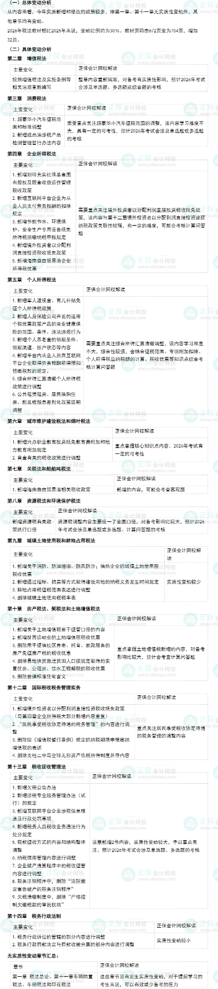 2026年注册会计师考试教材终于和我们见面了,教材的下发意味着各位考生朋友的备考之路也要正式拉开帷幕了。从注会《税法》教材的整体章节体例来看,2026年税法教材章节没有变化,仍旧是14章。