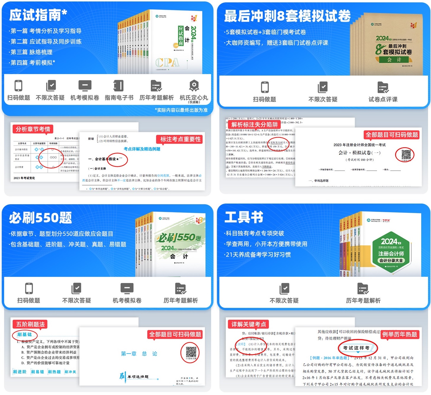 没有最好只有更好!不选贵的,只买对的!如果准备参加2024年注会考试,报课的同时辅导书必不可少。有需求的快速入手吧!更多辅导书类别、价格可前往财会书店查看>>