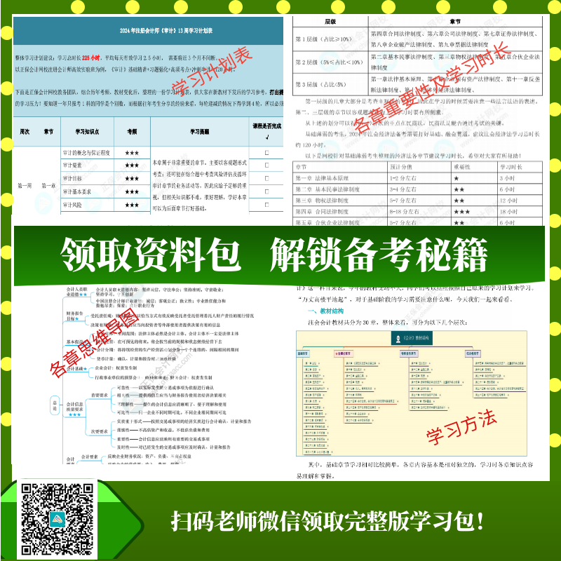 其他资料不再一一展示了,用过的同学都说好!这么丰富多彩的资料,小注不允许大家没有,现在进群领取,2024注会“一套搞定”资料包抱回家!领跑2024年备考!