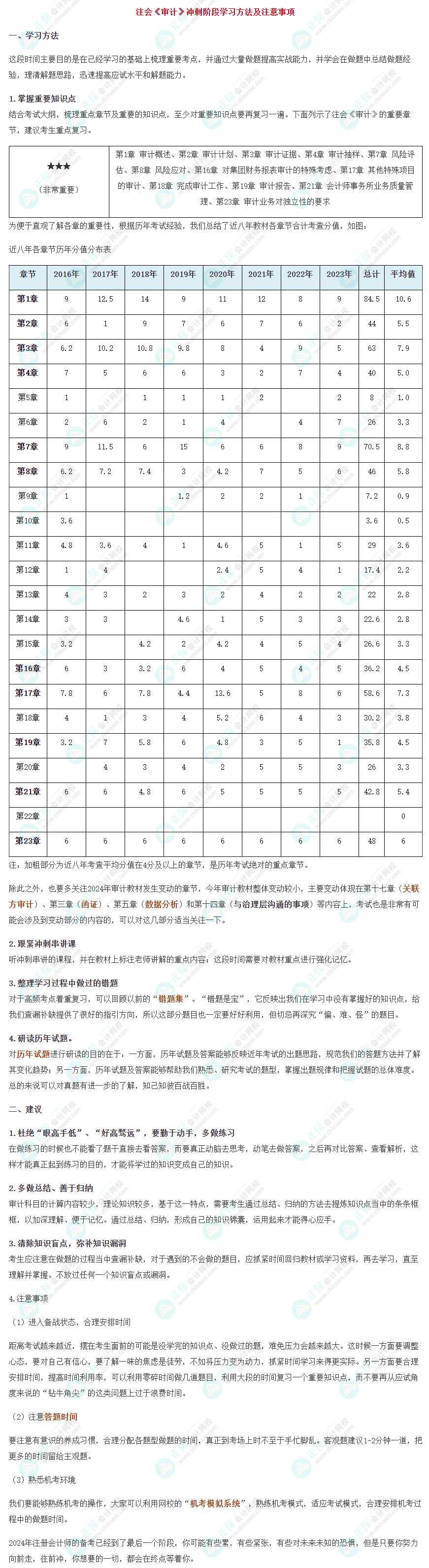 2024年注册会计师考试时间为8月23日至8月25日,距离考试仅剩了一个多月的时间,各位学员对此是不是既紧张又期待呢,到了最后的冲刺阶段,正保会计网校的老师为大家总结了一些这一阶段的学习方法及注意事项,希望能够帮助到大家,并顺利地通过注册会计师专业阶段审计科目的考试。
