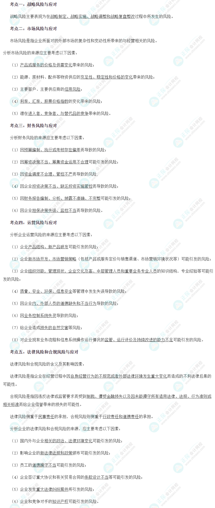 【注会战略默写本——第八章 企业面对的主要风险与应对】