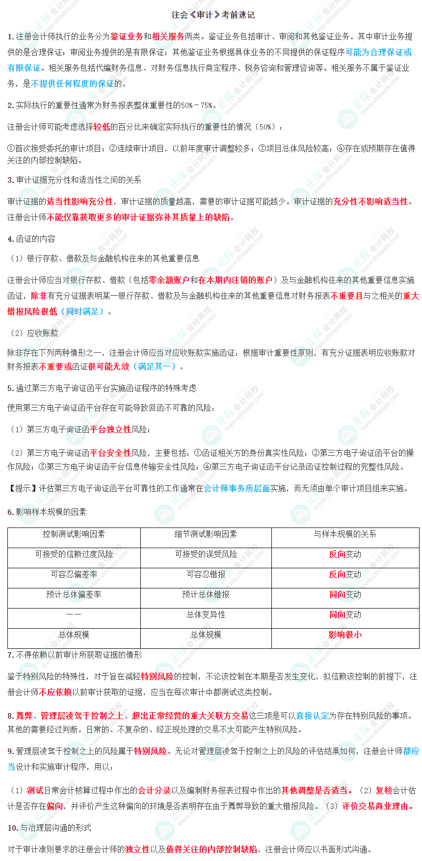 注会考试已经进入倒计时了!各位注会考生准备的怎么样啦?网校教研团队根据多年经验,结合考试的重点难点,为大家整理了注会《审计》科目的考前30分钟速记知识点,抓紧时间学起来吧~