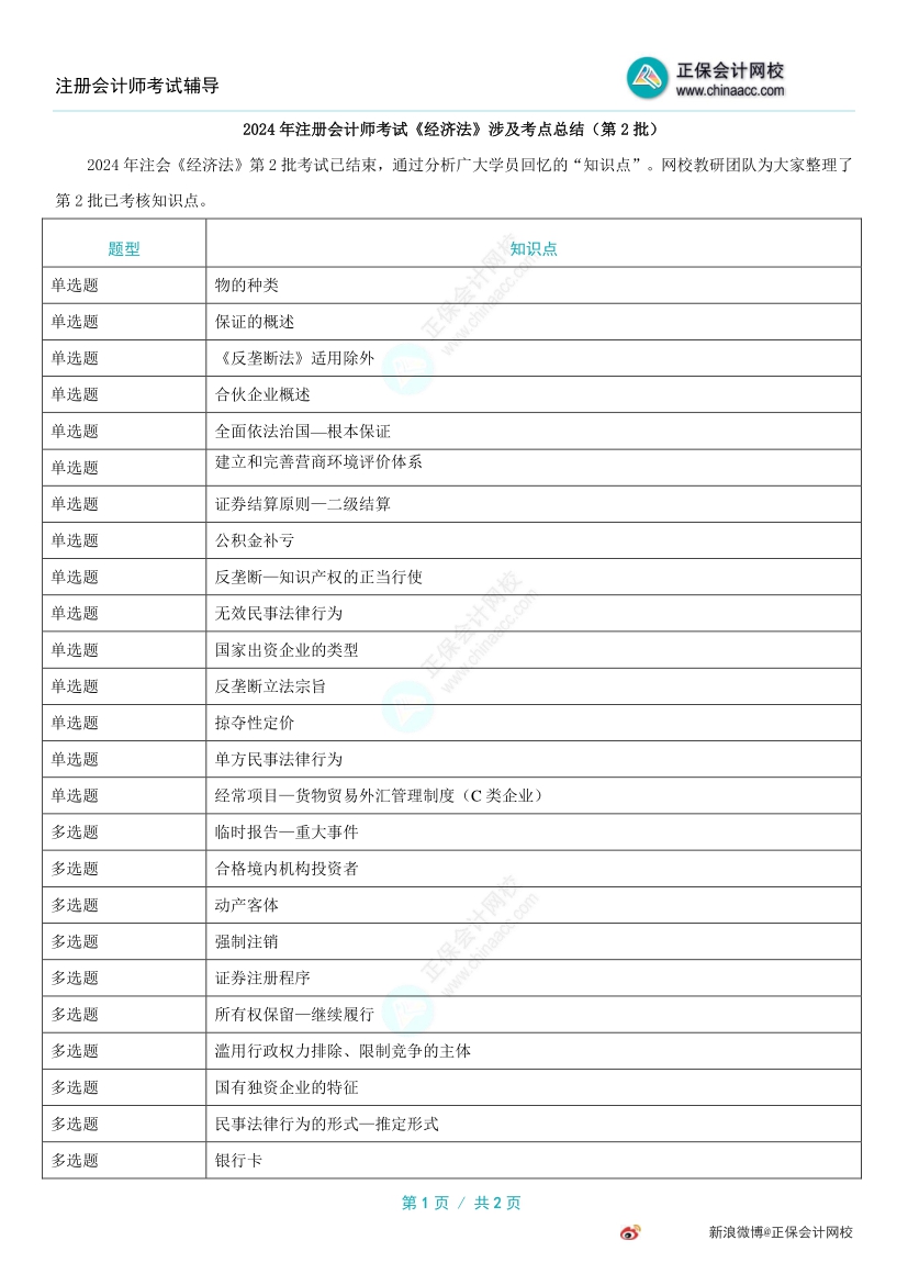 2024年注册会计师专业阶段《经济法》第二批次考试已圆满落幕!各位考生感觉如何?试题中是否大多是你熟悉的内容呢?对于考点分布好奇不已?别急,正保会计网校的老师们根据考生回忆,精心整理了注册会计师考试涉及考点,助你洞悉本年度考试的方方面面。