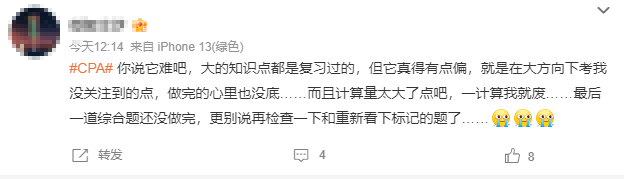 2024年注会的第一场考试会计科目已经结束了,大家都考的怎么样呢?不少学员反馈:太难了,计算量太大....