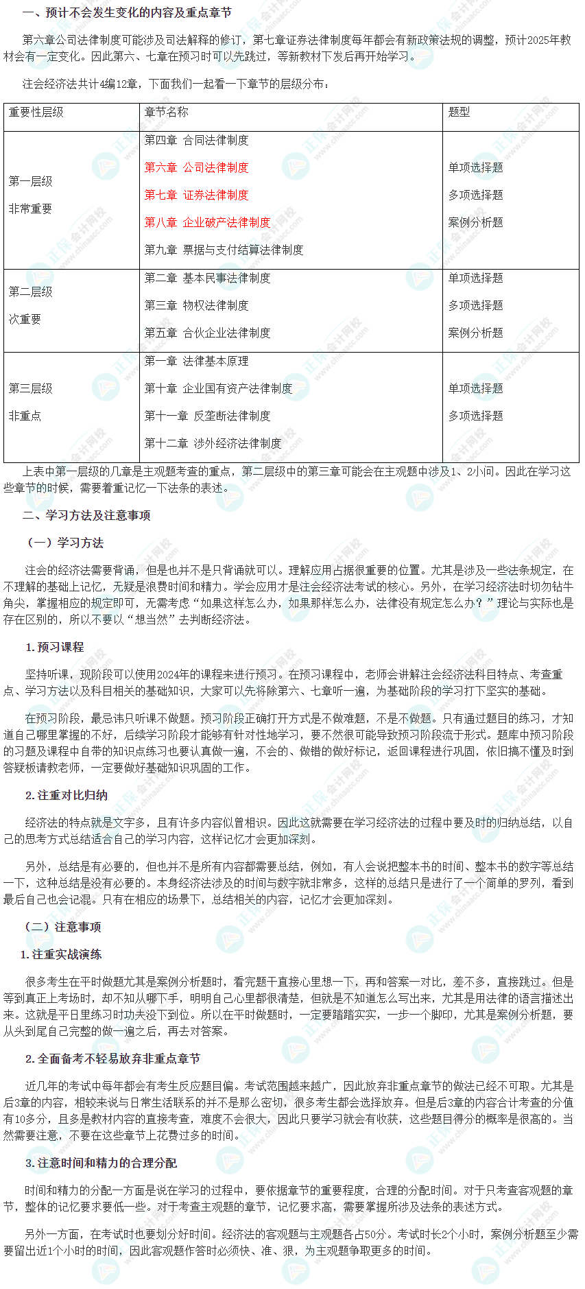 2025年注册会计师《经济法》预习阶段学习方法及注意事项