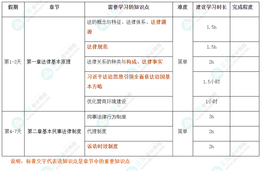 对第一次备考的考生来说,首先需要养成学习习惯,其次是打好基础,而且学习压力不宜过大,因此,十一长假期间,零基础考生可以先学习第一章和第二章的内容。这两章比较基础,相当来说也比较简单,对培养学习习惯来和打好基础是最适合的。