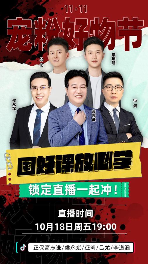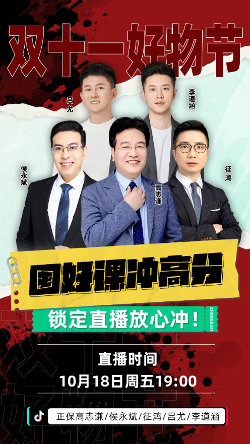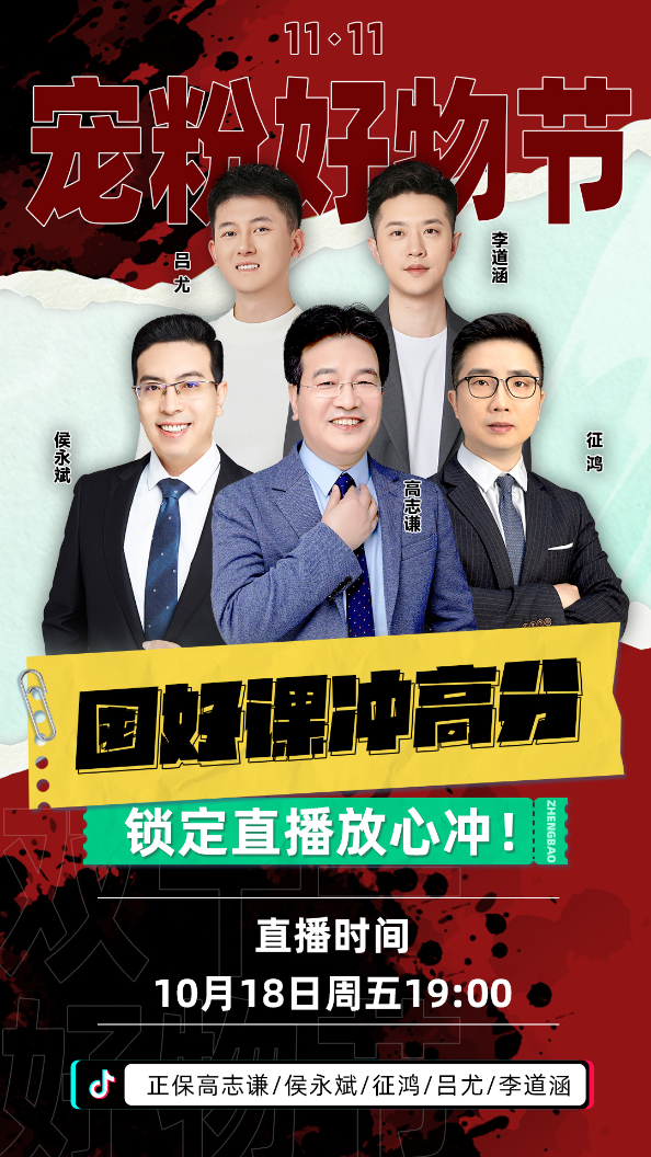 网校明星讲师高志谦/侯永斌/征鸿/吕尤/李道涵等,18日19点将在抖音个人账号直播!