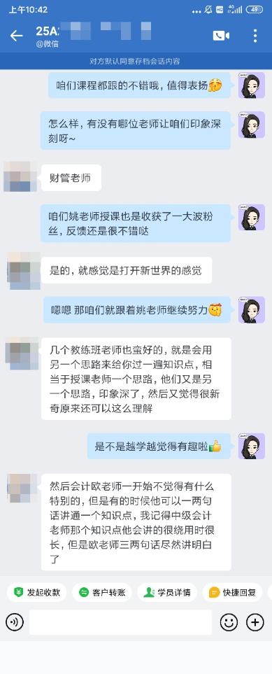 财管老师讲课感觉是打开新世界的感觉,教练班老师也蛮好的,会用另一个思路来讲解,欧老师两三句就能讲通一个知识点~