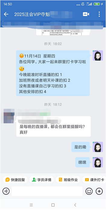 2025年注会VIP夺魁班全新升级,大屏直播,严管督学,保姆级服务全程陪伴,帮大家摆脱学习“拖延症”,备考过程中,还能和很多志同道合的考友并肩学习,学习更有动力!查看2025年VIP夺魁班课程详情>
