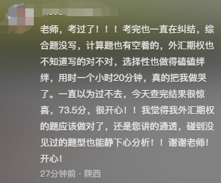 2024年注会查分入口开通!立即查分>> 大家都查分了吗?网校老师又收到一波来自学员对达江老师的好评,一起看看吧!