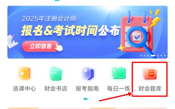 登录正保会计网校APP,进入后点击左下方的首页,然后点击上方中间位置的免费题库-就可以进入注会的免费做题入口了。
