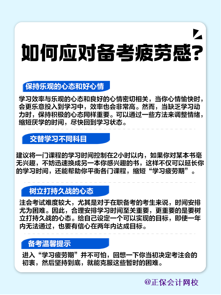 学会应对备考过程中出现的疲劳感,就证明你已经掌握了适合自己的备考方法,网校2025年注会新课已经更新,赶快来一起学习吧!查看课程详情>>