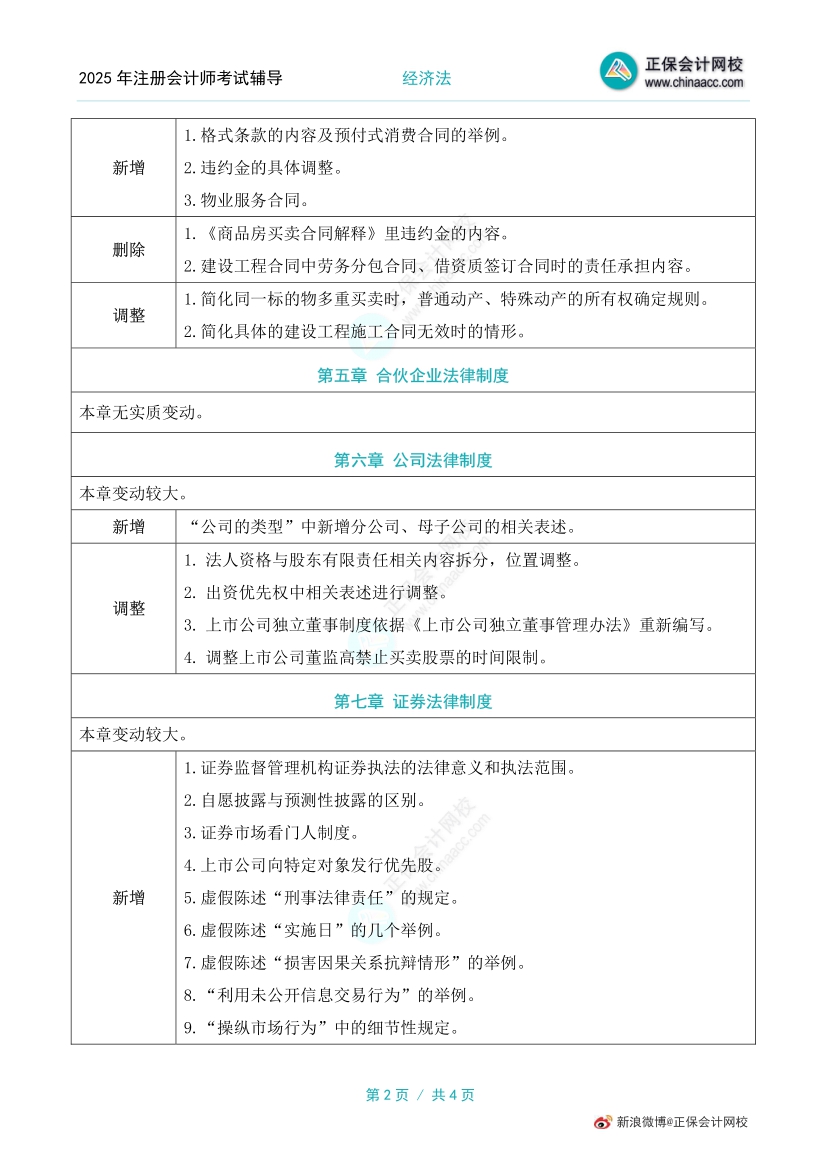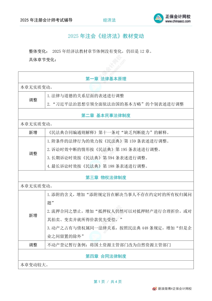 2025年注册会计师考试教材已现货,了解详情>>,同学们抓紧时间学习啦,网校老师给大家整理了2025年注册会计师《经济法》教材变动对比,一起来看下~【直播解析变动对比>>】