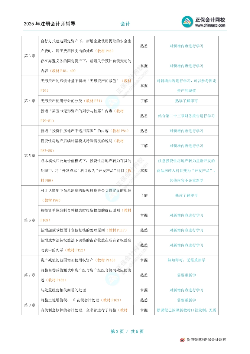 2025年注册会计师报名简章和考试大纲都已经公布了,很多同学已经提前预习,不知道自己要不要再学一遍?应该重点学习哪里?为此小保给各位“早鸟们”整理了2025年注会《会计》每章的变动知识点并配置了学习指导建议,一起看下吧!