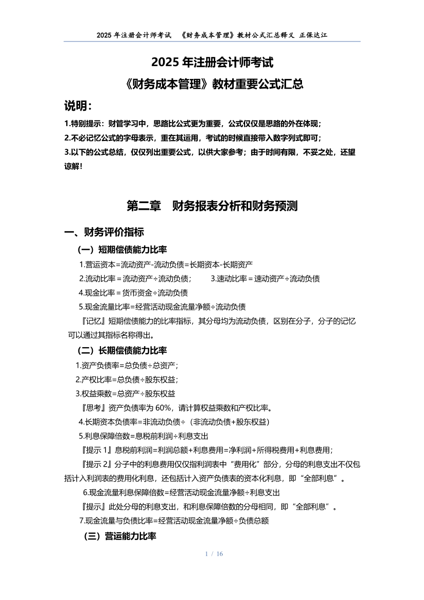 2025年注会《财管》备考关键在于吃透公式!达江老师《财管》重要公式汇总已更新!赶快来下载学习吧!