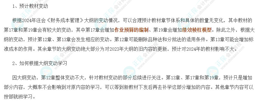 上一篇:2024年注册会计师《财管》教材详细变动对比