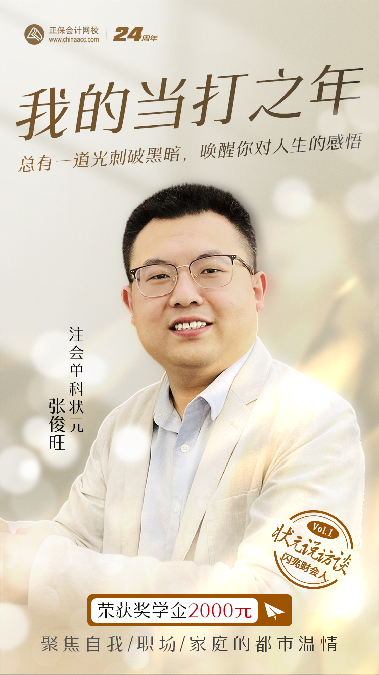 网校2023年注册会计师单科状元出炉!学员张俊旺注会《会计》科目得分84.75分,夺得单科状元,荣获网校奖学金2000元!