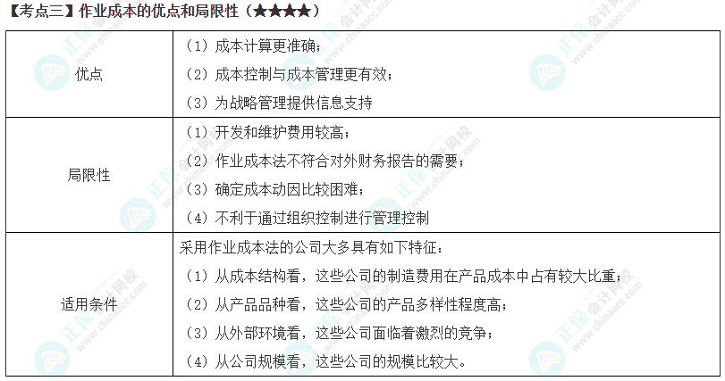 注会《财管》高频考点第14章:作业成本的优点和局限性