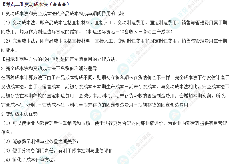 注会《财管》高频考点第15章:变动成本法