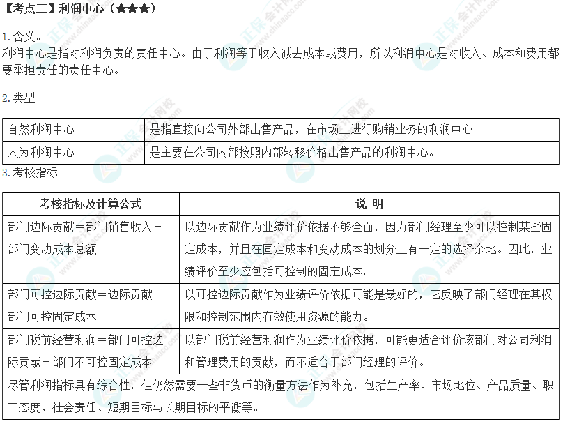 注会《财管》高频考点第18章:利润中心