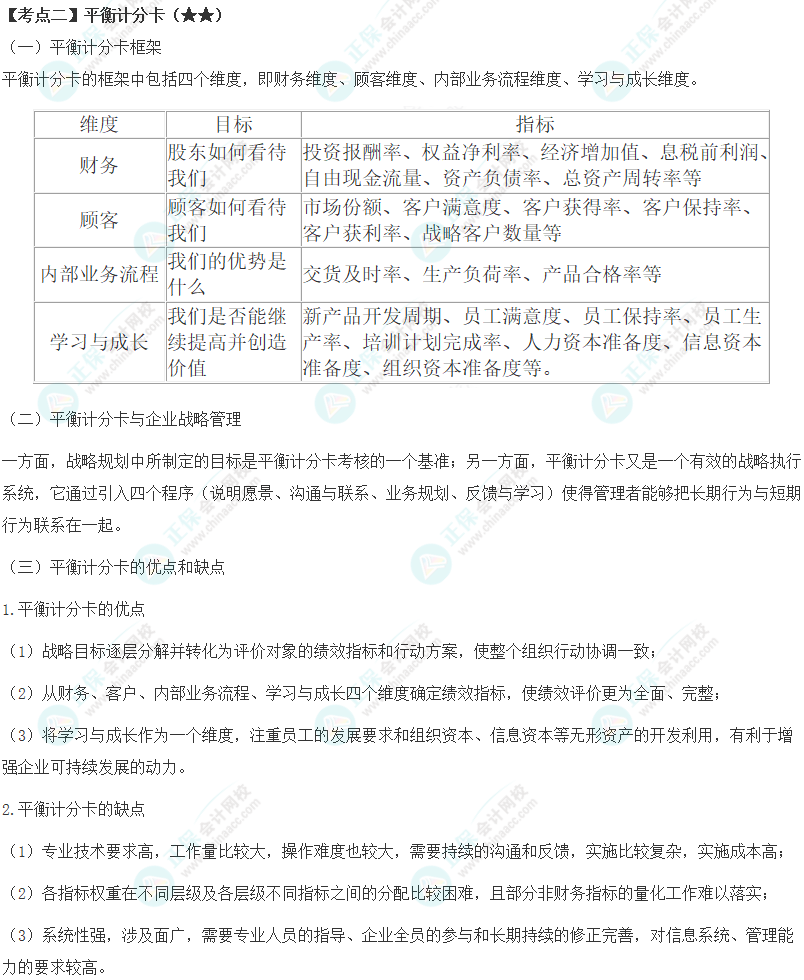 注会《财管》高频考点第19章:平衡计分卡