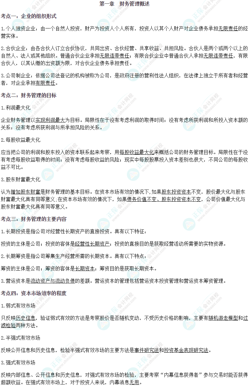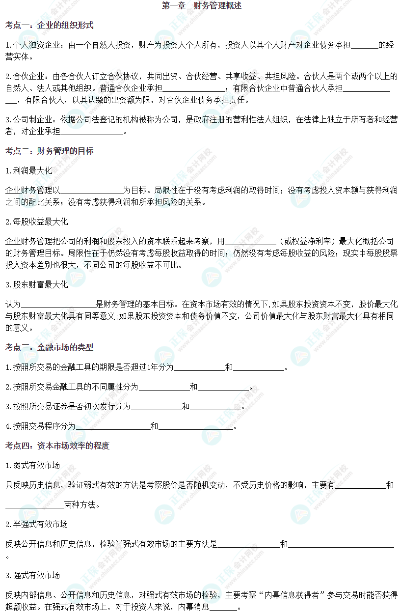【注会财管默写本——第一章 财务管理概述】