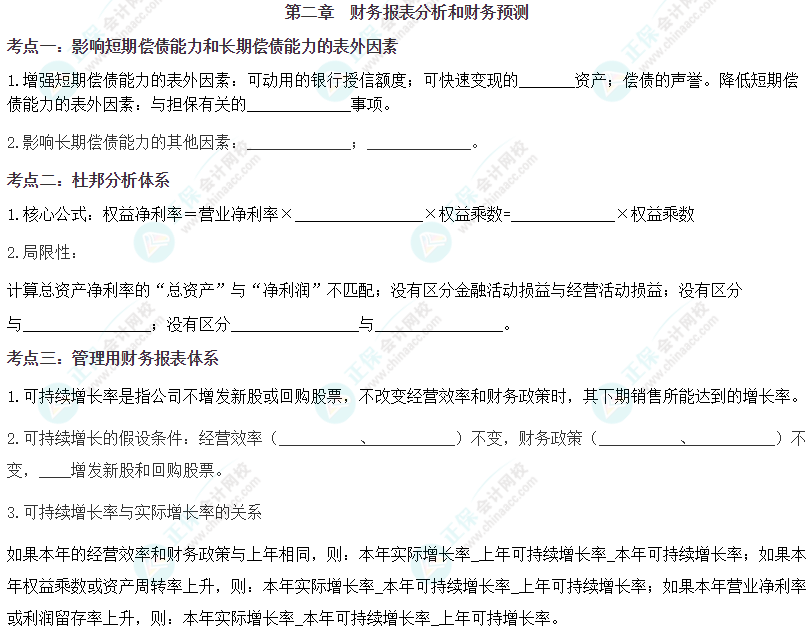 【注会财管默写本——第二章 财务报表分析和财务预测】